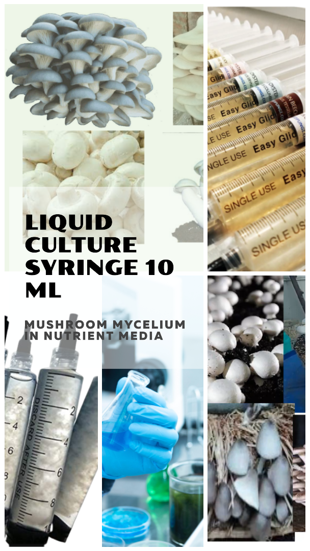 लिक्विड कल्चर सिरिंज 10 एमएल (लिक्विड न्यूट्रिएंट मीडिया में मशरूम माइसेलियम)